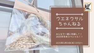 毎週水曜日/ ウエネウサルみどりFacebookより配信している「ウエネウサルちゃんねる」は、「ウエネウサルちゃんねる大晦日カウントダウンLIVE配信」として12月31日 23:50~ 配信を予定しております