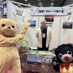 ウエネウサルの「くまもちゃん」と劇団こぐま座「コロちゃん」のコラボで私たちのブースだけではなくツーリズムゾーンのブース皆様を盛り上げました